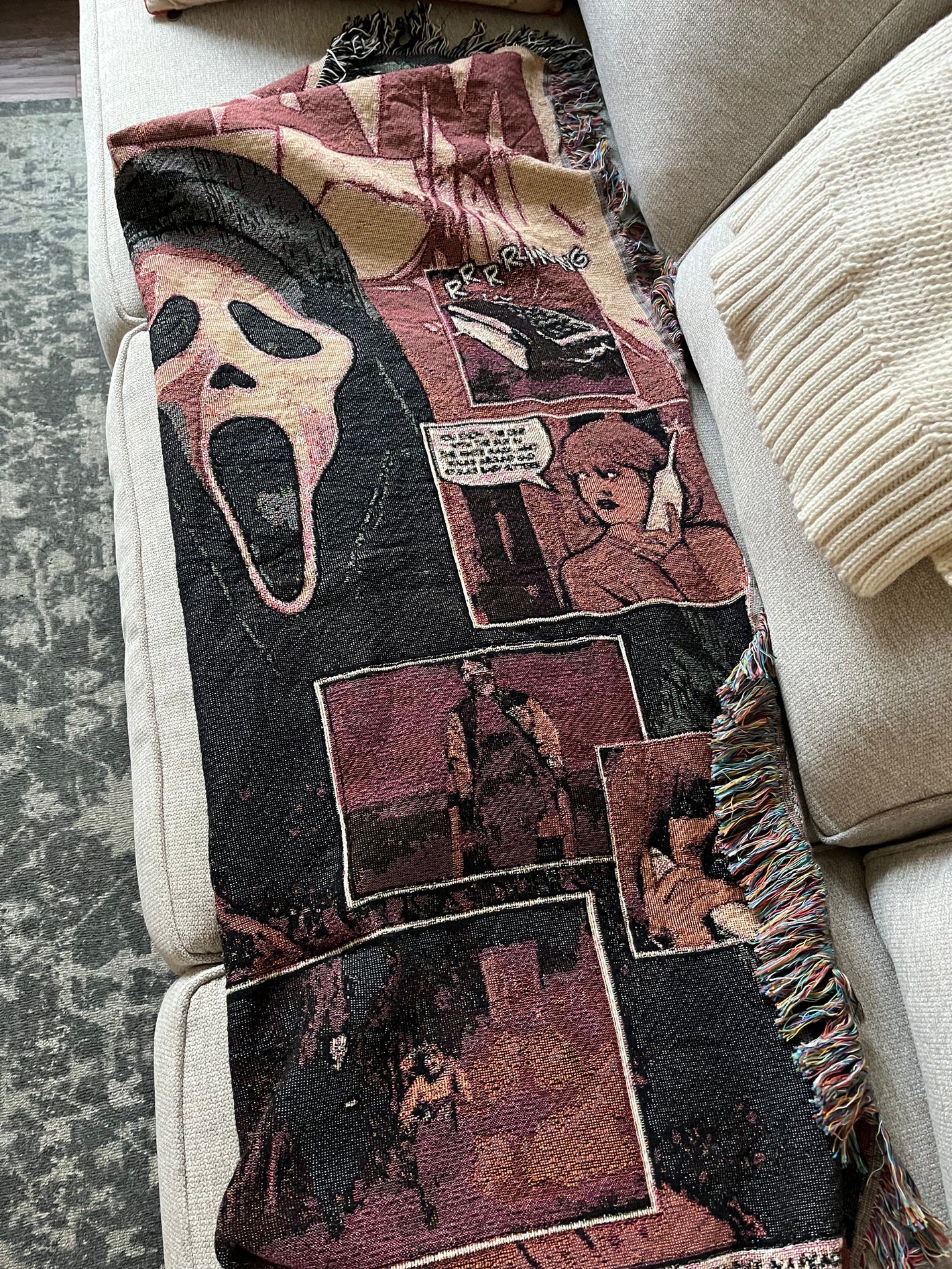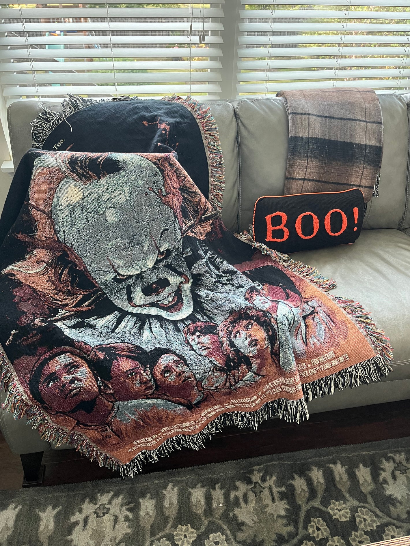 Wrap yourself in the thrill of classic horror with blankets featuring Ghostface, Pennywise, Michael Myers, and more. Each woven design brings eerie comfort, chilling style, and the perfect touch of spooky nostalgia to your space.